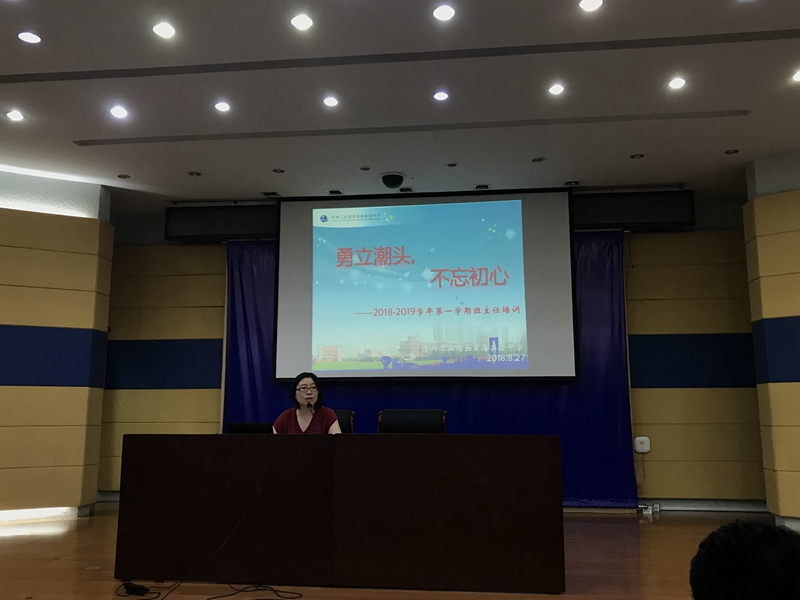 8月27日下午,星海实验中学初中部全体班主任、见习班主任、新入职教师齐聚一楼报告厅,举行题为“勇力潮头、不忘初心”培训活动,德育处张月兰主任主持会议。