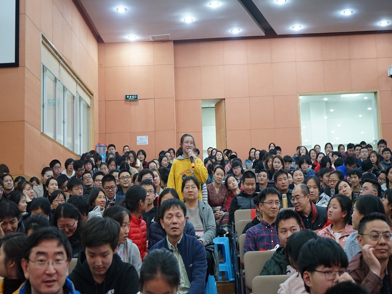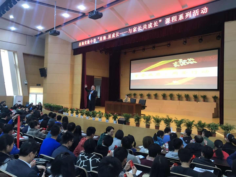 学校制作了“父母的一天”为主题的微电影,同学们通过镜头里父母为工作、为家庭辛苦的劳作,也感受到来自家庭暖暖的力量和感情。现场由学生说出来自己的感动,并对所有父母努力的付出深深地鞠躬。德育处张月兰主任从理性的角度,分别就积极看待情绪、合理对待压力、共建亲子关系、主动学会学习、关注同辈影响五个方面,从实际案例出发,落脚于初二学生生理、心理特点,分享了解决具体问题的方法,指引很多困惑无助的家长关注孩子成长的节点和细节,用爱关怀,用心陪伴,用榜样作用,积极学习和改变,思行结合,在青春相伴的路上,与孩子一起增加人生的高度。打开了青春期亲子教育中的困惑,也激发了家长和孩子们的共鸣和思考,场上不时响起热烈的掌声。
