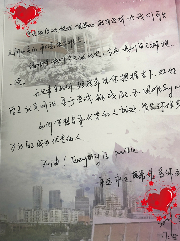 本次亲子教育活动以劳动为切入话题,形式丰富体验度高,进一步拉近了孩子、父母、老师之间的距离,而且增强了青春期孩子们的责任感,感恩之花在每个孩子心里已经悄然绽放。同时父母在陪伴孩子成长中的智慧也得到了增强,家校合力必将携手共赢。活动尾声,每个孩子在自己的“成长储蓄卡上”写下了自己的“青春记忆”,父母也写上给孩子们的寄语。系列“成长储蓄卡”将记载孩子们初中各阶段的成长点滴,承载师长、父母的嘱托和关怀,在毕业季时回味,孩子们必将收获诗绮青春!
