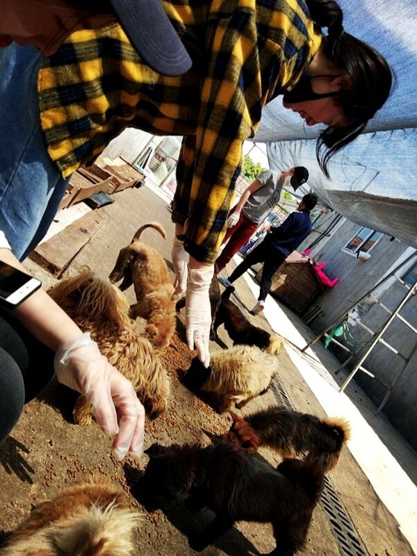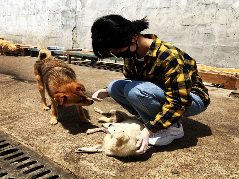 虽然路途遥远,但同学们热情高涨。来到志愿者协会时将近正午,恰逢小动物的开饭时间,同学们立即投入喂食喂水、屋舍打扫、粪便清理等服务工作。据协会志愿者介绍,这里收留救助的流浪狗就有一千多只,除了喂养,还有医疗救治、日常管理等大量任务,他们都是利用节假日和休息时间来提供无偿志愿服务。