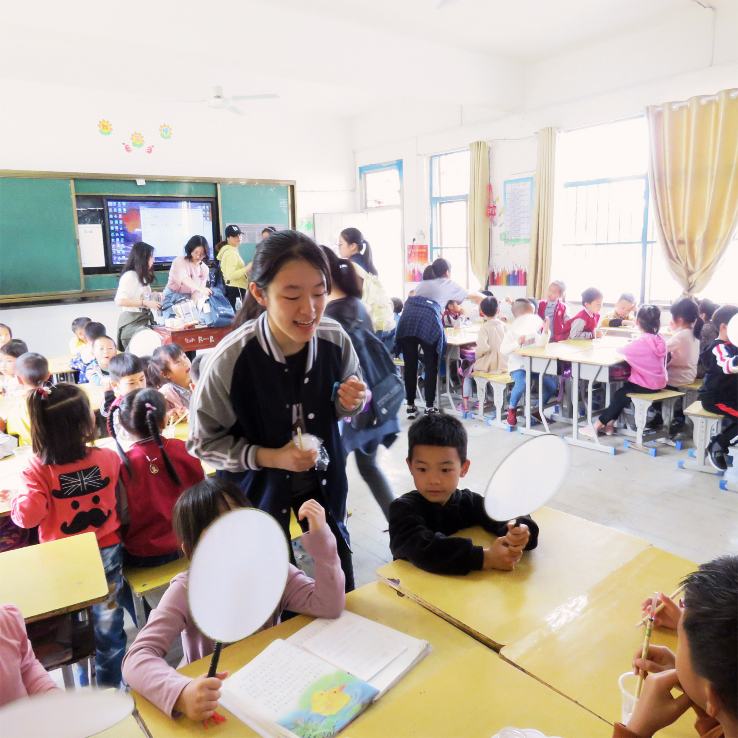本次研学活动的另一重要部分,就是星海学子走进漆工镇方志敏希望小学,进行支教活动。在星海,同学们的身份只是同学,然而当他们走进小学课堂,学生的身份就转变为“传道授业解惑”的老师了。面对着几十张满是稚气的脸庞和几十双充满期待与希望的眼睛,同学们才意识到,由座位走上讲台,学习的任务就变成了教书育人的责任,三尺讲台虽小,但承载的东西却很多。令人欣慰的是,同学们早就精心准备,并在前一天晚上反复打磨课堂内容,课堂上团结合作,互相鼓励,为孩子们带来了一节节精彩纷呈的课:从绘画、折纸到文学、文字,从物理、地理到化学实验,从音乐、劳技到心理课程,每一节课都倾注了同学们的构思与心力,同学们每个人都在积极参与课堂,从这次不一样的体验与角色转换中,收获了责任感以及孩子们最纯真的笑容。更令人感动的是,短短的一节课,爱与真情已经在希望小学的孩子们与星海学子之间传递。孩子们以稚嫩但真诚的笔触写下“我喜欢你”、“感谢大哥哥们来给我讲课”这样的文字。对同学们而言,支教活动,不是随意简单的课堂,而是心与心之间的交流和碰撞。支教活动,不仅让同学们与希望小学的孩子们有了亲密的接触,收获了一份份虽然短暂但却紧密的情谊,更培养与锻炼了同学们的实践能力。