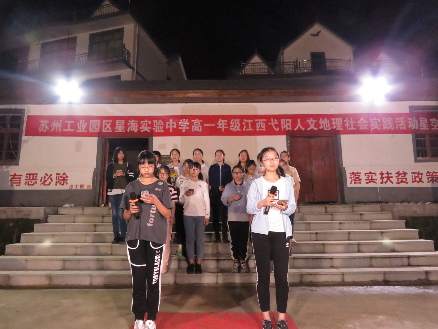 “我们也曾端坐在礼堂中,感受着近一个世纪前这片平和土地上曾经的腥风血雨,翠绿的大地上,红色的火焰依旧在燃烧。英烈逝去,但精神永恒。我们也曾在属于自己的夜晚,吟诵,歌唱,舞蹈,兴奋与喜悦仿佛要将整个星空点亮。”在返校之际,学生回顾五天的研学活动,写下了这样的感悟体会。对于高一的星海学子而言,弋阳之行,将会是他们一生难以忘怀的记忆。这难以忘怀的,不仅仅是“满载一船星辉,在星辉斑斓里放歌”的星空诗会:同学们抑扬顿挫才情尽露的诗歌,或慷慨激昂或低回婉转的深情朗诵;不仅是篝火晚会里同学们精彩纷呈的才艺表演:或是余音绕梁的歌声,或是精妙绝伦的舞步;也不仅仅是点滴的农家生活:或是兴致勃勃的学做清明果,学炒菜,或是激动人心的抓鱼大赛,厨艺大比拼;更是在弋阳之行中,同学们收获的那恬淡静谧夜空下的难得寻觅到的点点星光、漆工镇湖塘村中老区乡民的淳朴和真诚、自我的体悟与成长、对价值的体认和对责任的担当。