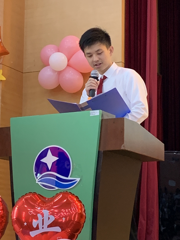 高三(4)班倪尚原同学家长在致辞中,感谢星海老师们三年来的谆谆教导,也感谢孩子们三年来毫不懈怠的奋斗。她特别告诫孩子们:离开校园走上社会以后,你们将面临着更加激励的竞争,更加艰苦的考验,但有师长们作为后盾,我们将永远是你们温暖的港湾。