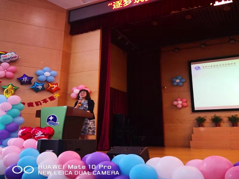 陈丽霞校长为毕业生代表颁发了毕业证书并致辞。陈丽霞鼓励同学们:要弘扬中华传统美德,知恩图报、爱国爱家、坚韧进取;要学习前辈科学家们的拼搏精神,在求学的道路上不断奋进,成为社会需要的人才;更要拥有这个时代要求的世界情怀,做世界优秀公民,真正实现我们“人人成功 人人成星”的办学理想。