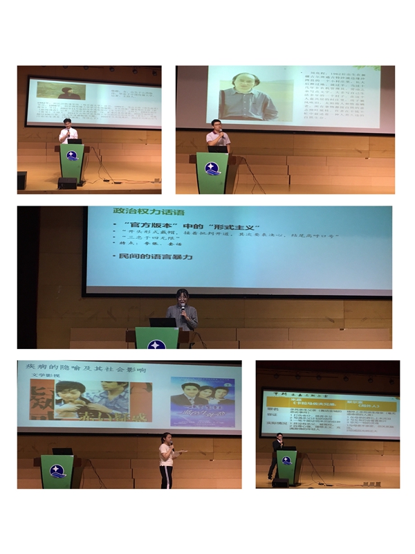 报告开始,高二(4)班沈子涵同学带领大家一起品读柴静的《看见》,追寻那庸常生活中看不见的诗意与真实,永葆珍贵的记者初心。高二(1)班赵延恩同学则为大家一起构筑了“一个人的村庄”,提示大家以独立时间去体悟人世真善美。高二(8)班姜菁菁同学为大家送上了严歌苓的《白蛇》,以文革为叙事题材,挖掘出了那个时代被扭曲的人性,揭示了“话语即权力”“集体无意识”的时代特征。高二(7)班孙凡茗同学带来的是苏珊·桑塔格《疾病的隐喻》,将其与福柯进行对比,从文学、政治不同角度,呼吁大家要保持理智,减轻疾病带来的身心痛苦。高二(2)班郭俊峰同学分享了他对《卡拉马佐夫兄弟》的理解,并通过作者人性精湛的描写,揭露人间审判的有限性以及文字背后深刻的哲学命题。