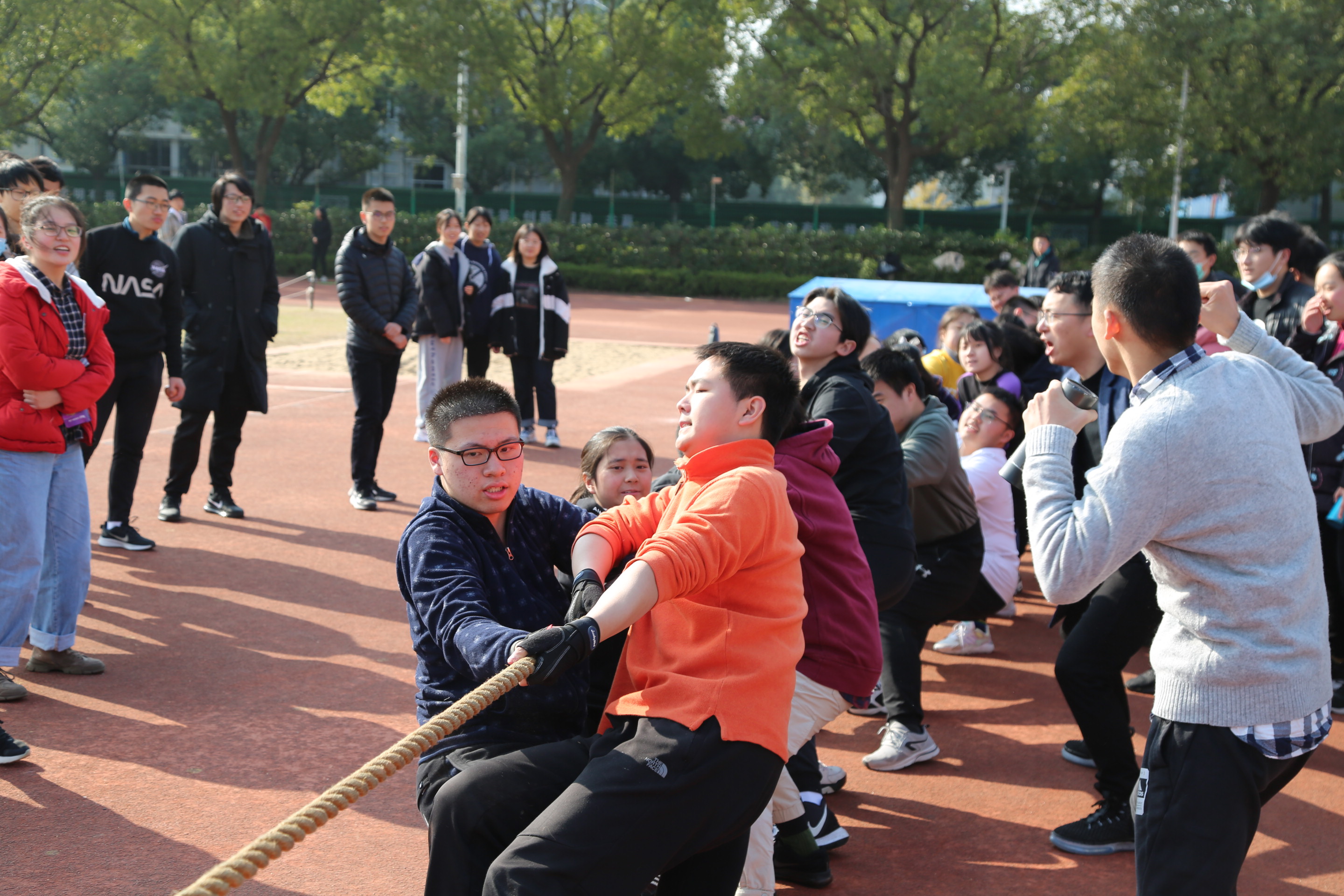 义卖活动进行的同时,以“传承一二·九,激荡爱国情”冬季动起来为主题的拔河比赛也在操场上热火朝天地进行着。各班都派出了最强的比赛阵容,齐心协力,勇争第一,当比赛的哨声响起,参赛队员们紧握长绳,卯足了劲拼命往后拉!学校的领导、老师和同学们也在队伍旁边助阵,为比赛队员呐喊加油,每一声呐喊都带来团结向上的力量,蓝天、白云、阳光,天气是如此的给力,加上现场的哨子声、呐喊声,和不远处义卖的欢笑声,此刻的操场无不彰显着青春的朝气。