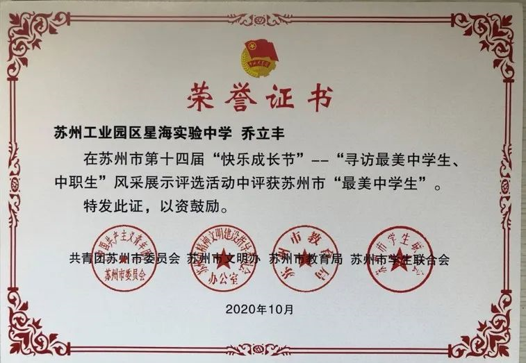 乔立丰、张翰扬获评“苏州市最美中学生”