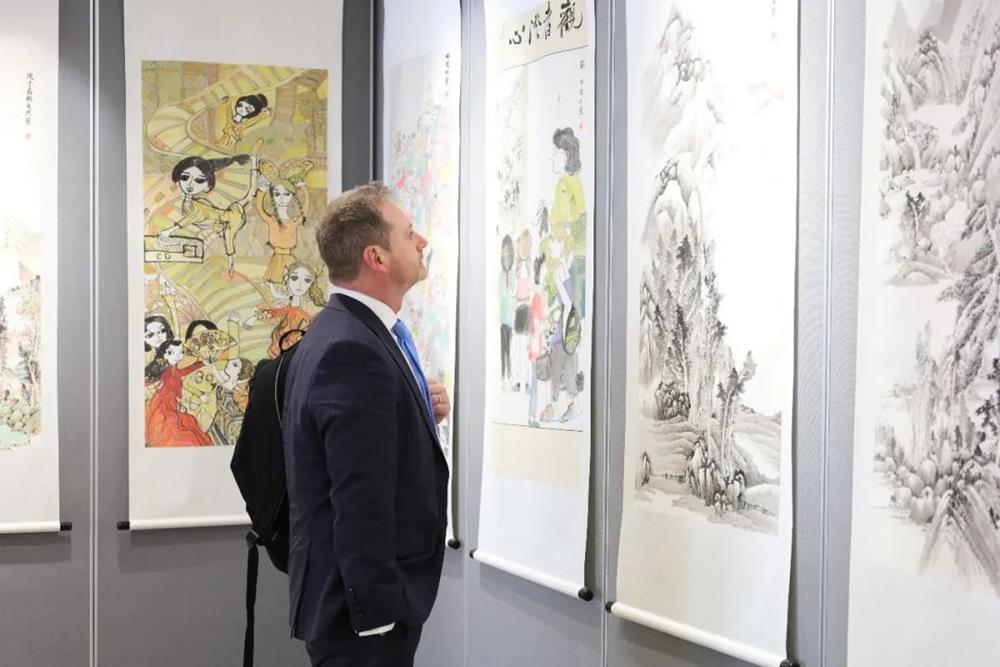 交流会议开始前,英国朴茨茅斯文法学校校长一行在我校范红梅副校长等人的带领下,兴致勃勃地参观了融和楼的学校历史墙、师资展示墙、蜡染手绘学生作品、星光报告厅、问渠阁图书馆。