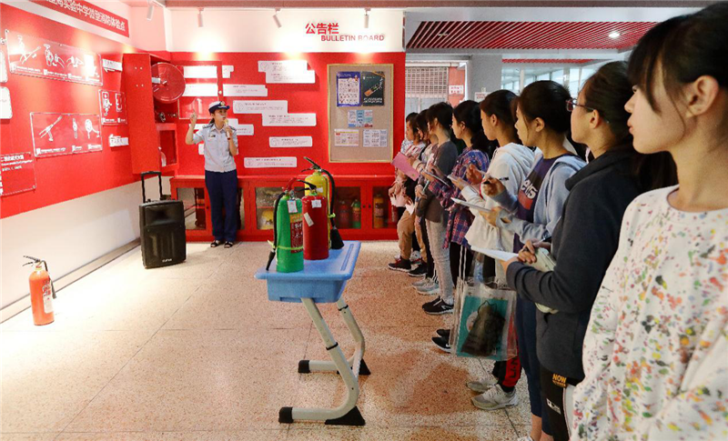 在培训方式上,安保处将进行完善与创新,将高中学生培训任务交给学生会,充分发挥学生的管理能力;学校组织校车疏散演练、校园法制讲座、消防疏散演练活动,尽为提高学生的参与度和兴趣;未来学校还将会为消防体验点增添VR设备、更新更多的安全知识等,相信会有更多的学生参与到消防体验活动中来。