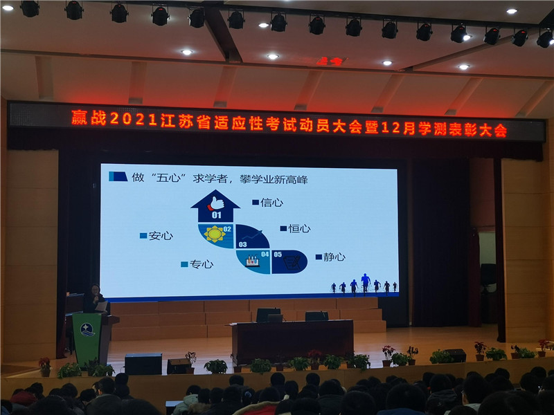 2020年12月30日下午,星海实验中学召开以“不忘初心,助力未来”为主题的“赢”战2021年新高考适应性演练动员暨12月调研表彰大会,教导处副主任黄志诚、冯军及各班班主任、高三年级全体学生参加。高三年级组长李清主持。