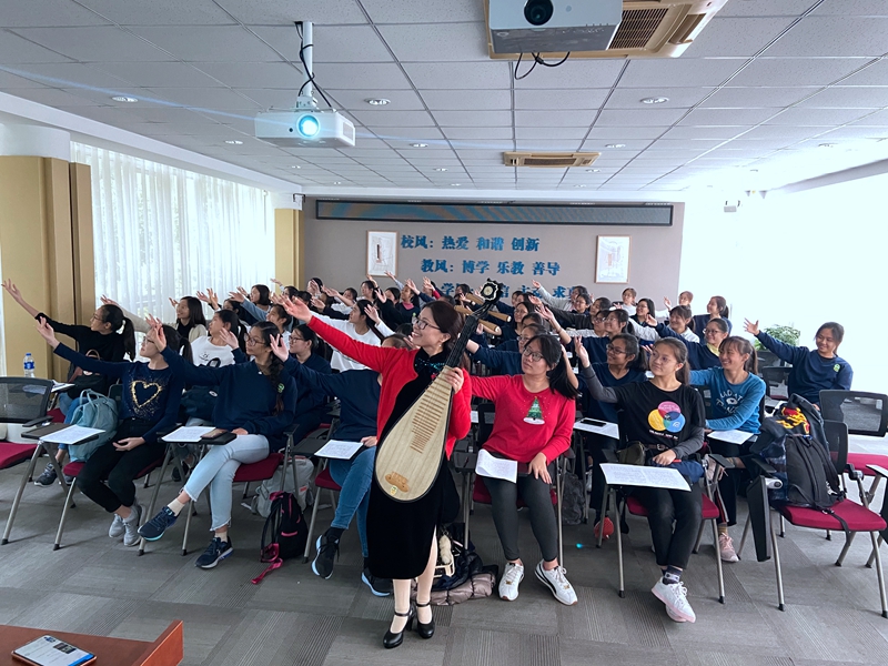 为了帮助南洋女中的同学们切实地感受汉语言的魅力和汉文化的博大精深,语文组李徐敏老师、历史组郑孟肖老师分别开设了《古诗词赏析》、《苏州历史》专题课;音乐组顾莺、王子铭老师分别开设了《扇子舞》、《中国民歌》体验课;美术组张一驰老师开设了《围巾扎染》制作课;体育组齐淑慧、唐忠才老师开设了《健美操》、《太极拳》活动课;生物组蒋婓雯老师开设了《标本制作》实践课。学校还聘请了校外专业老师,带领同学们学习苏州评弹和刺绣。丰富多彩的课程,不仅让南洋的同学们走进了我们的课堂,并且弘扬了中华传统文化。