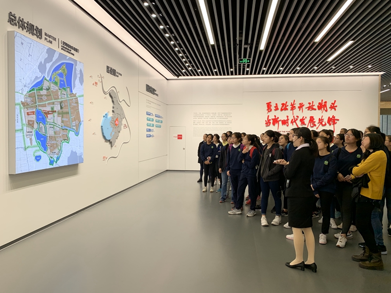 苏州工业园区是中国和新加坡两国政府之间最大的合作项目—,因此学校还带领南洋女中的同学们参观了苏州工业园区展示馆,了解中新合作的历程与成果。在参观中,同学们不仅了解到了中新合作的时代背景,更深深地被园区以水为魂的城市规划、蓬勃发展的高科技产业等吸引了。