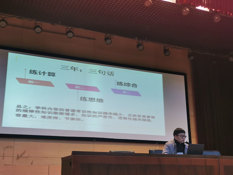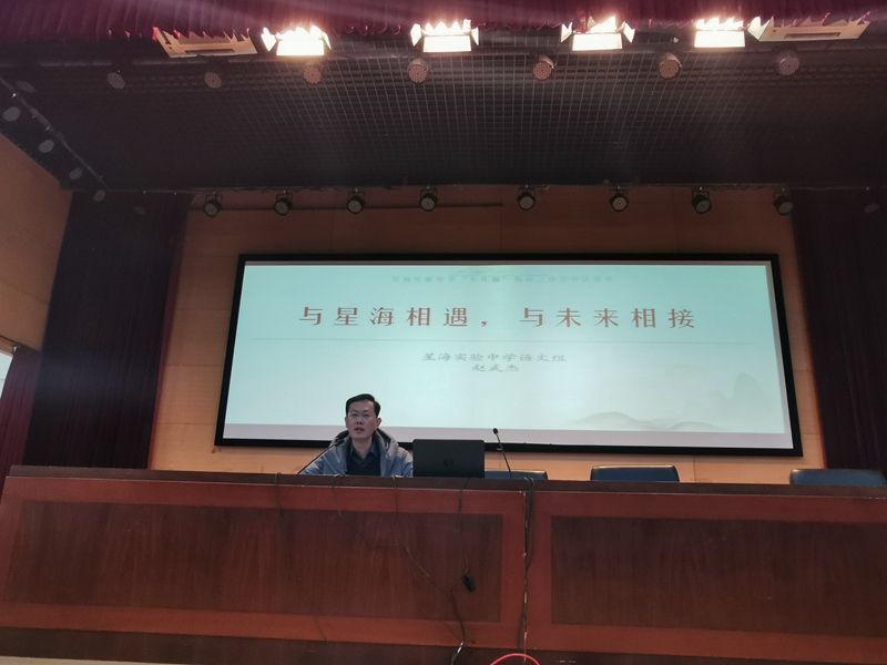 校党委委员、初中部教科室主任赵武杰以《与星海相遇,与未来相接》为题作了诗意的开场,分享了语文学科方面的学法指导。赵武杰结合课标,从“小升初”升了的是什么入手,帮助家长明确初中阶段由体量简易到内容庞杂、由知识了解到综合运用、由客观复刻到主观表述的三大提升表现。就古诗理解、文言文阅读和现代文阅读这三大方面为家长提供具体的衔接指导。赵老师还专门撰写了星海课外阅读进阶指导与课外阅读卡积累卡,以二维码的形式供家长扫描下载,获得家长们的一致好评。赵老师建议家长关注孩子个性,定制基础型、专题型、读写结合等适切的衔接方法,希望家长们将“陪伴是最长情的告白”的陪伴化为有质量、有温度的陪伴,一同给予孩子最好的帮助。