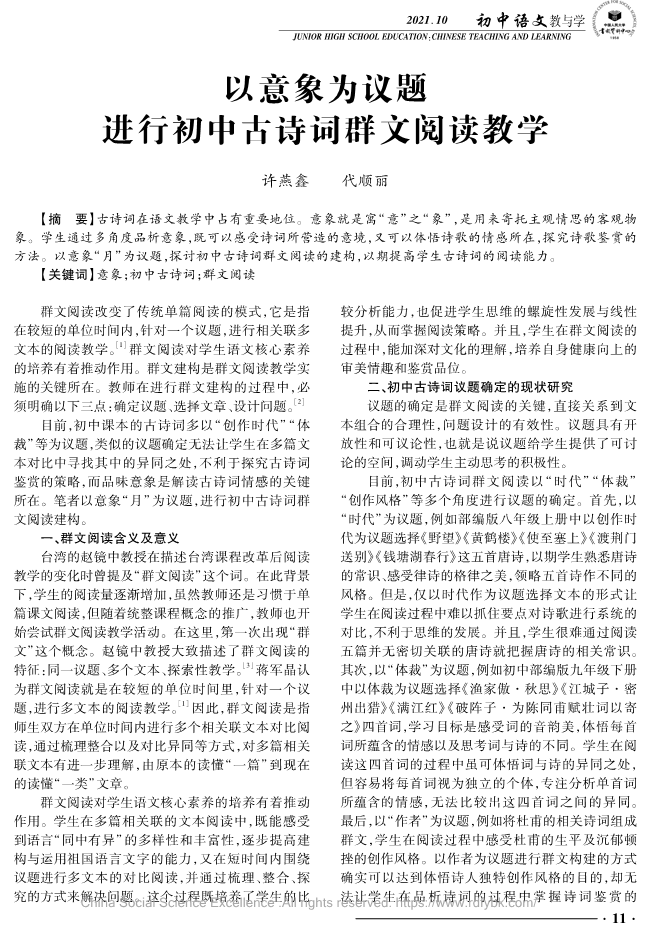 《核心素养视域下古诗文群文阅读教学的多元路径研究》