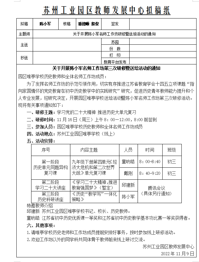学习党的二十大精神推进历史大单元复习暨陈小军名师工作室活动活动方案202211161116