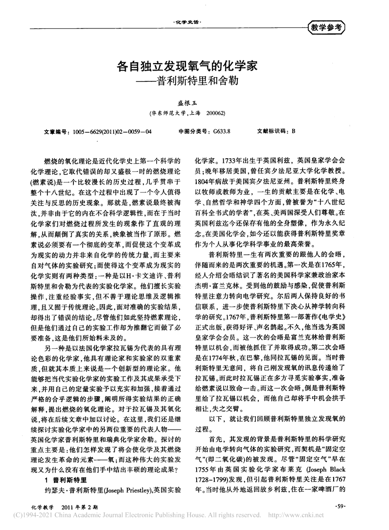 各自独立发现氧气的化学家_普利斯特里和舍勒_盛根玉