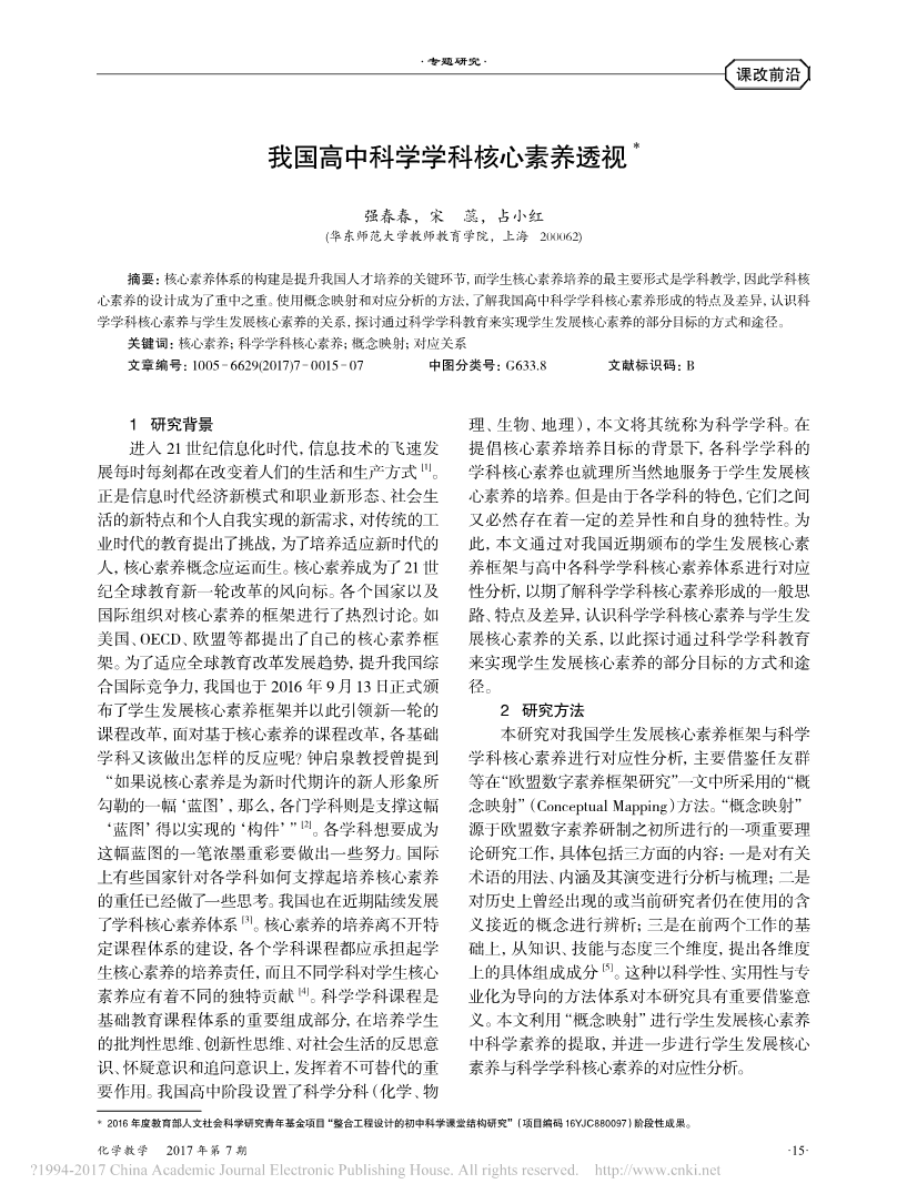 《拓展高中化学教材实验,培养学生化学核心素养的实践研究》