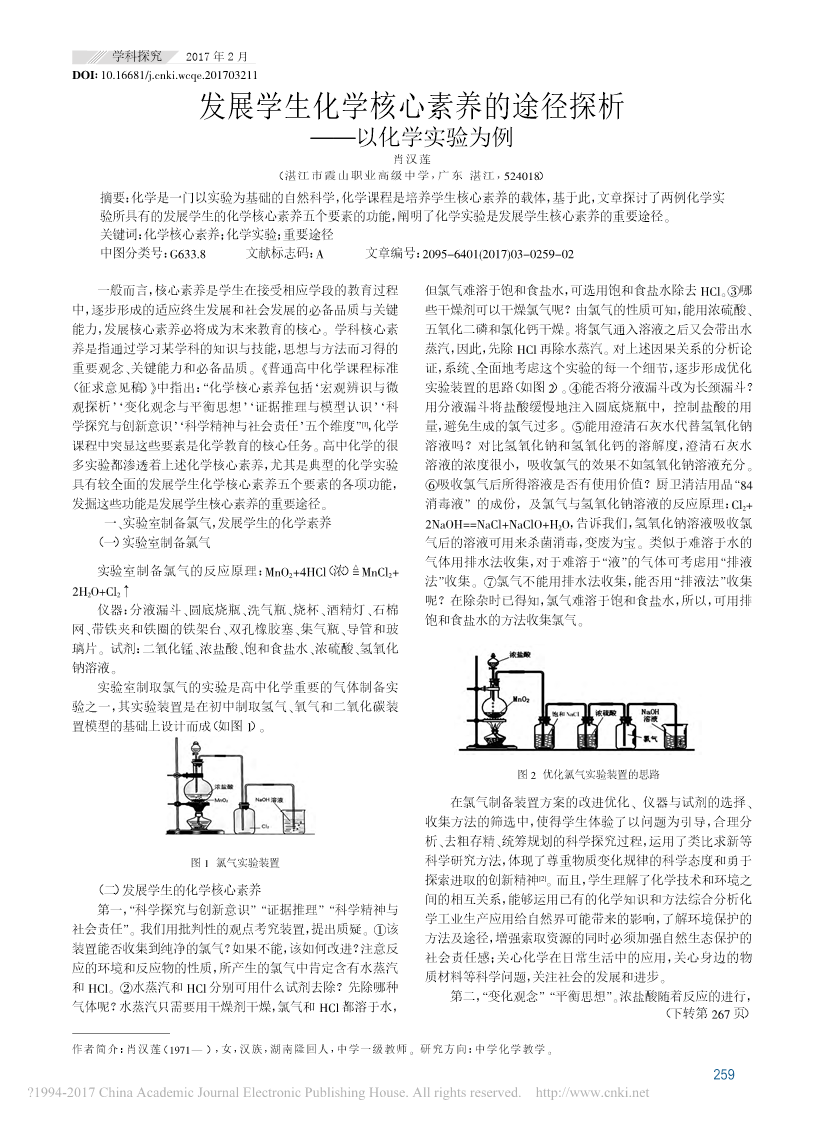 课题学习资料:《发展学生化学核心素养的途径探析 以化学实验为例》肖汉莲